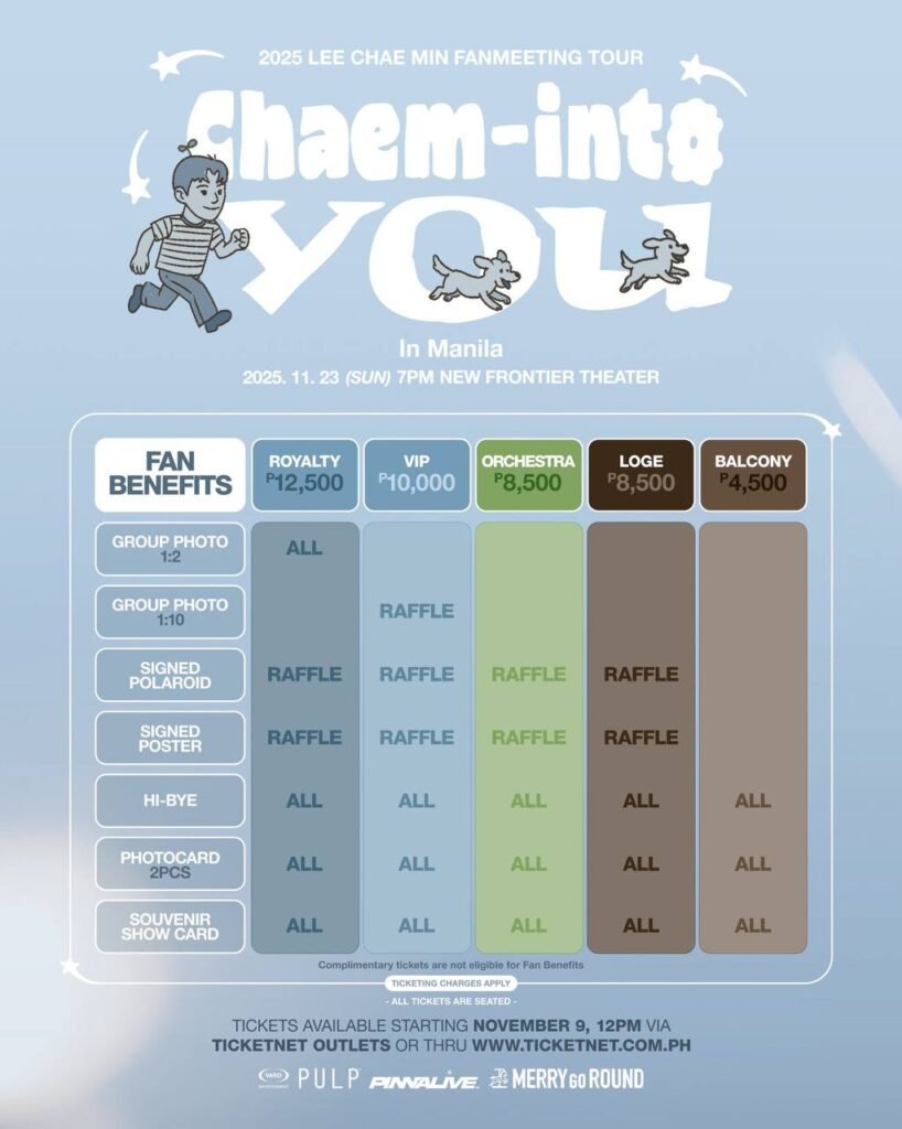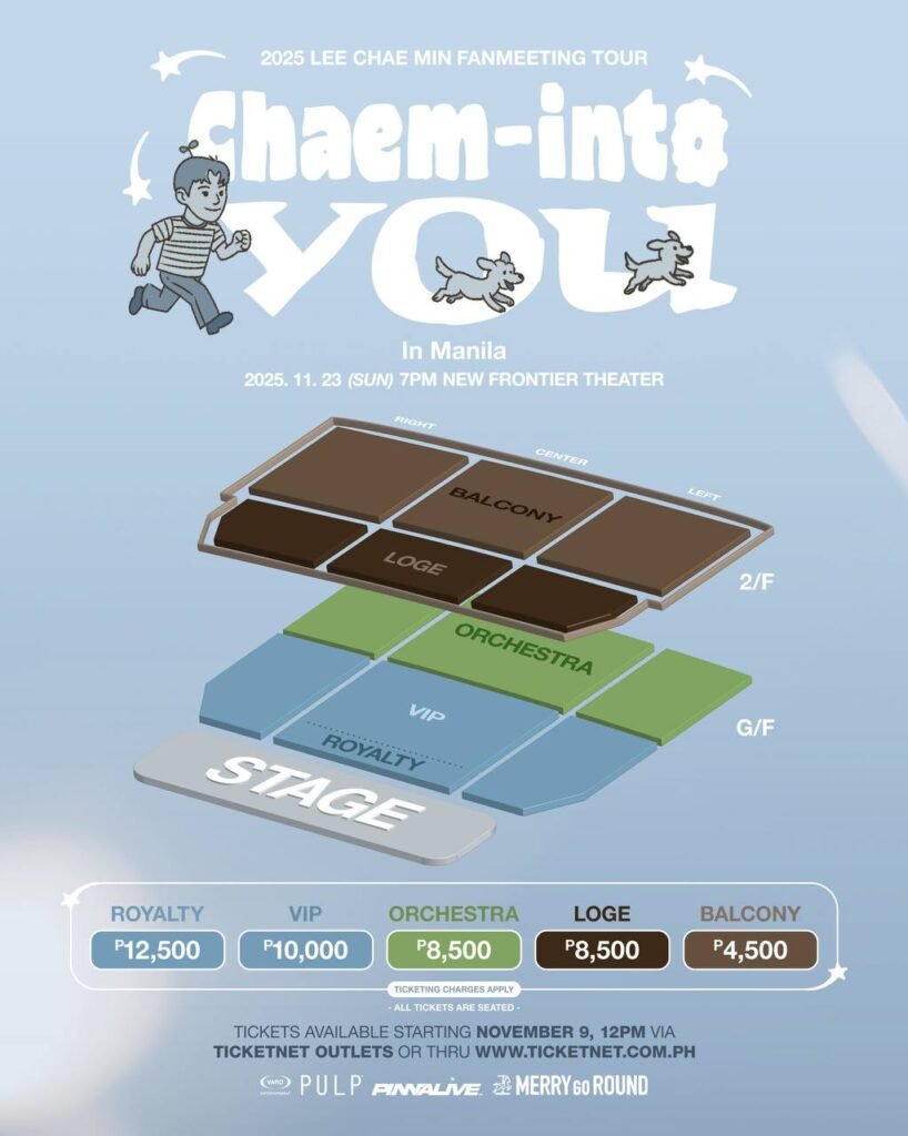 Now, LEE CHAE MIN is ready to create unforgettable memories with his Filipino fans. The 2025 LEE CHAE MIN FAN MEETING TOUR ‘Chaem-into you’ in MANILA on November 23, 2025 at the New Frontier Theater promises an exciting night filled with special performances, interactive segments, and heart-melting moments that will make every fan feel closer to the actor. This event is set to be a full-course experience that will surely make fans “feel all the feels and kilig.” So make sure to mark your calendars as tickets will officially be available on November 9, 2025 (Sunday) at 12PM PH Time via TicketNet outlets and online at ticketnet.com.ph.
